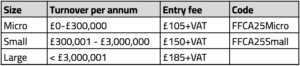 Cost to enter remains frozen for the sixth year running, and is scaled to your company turnover. Companies with a turnover of less than £3,000,000 can get a reduced rate entry fee: